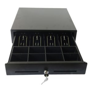 5 Bills & 8 coins RJ11/USB 2 Check slots 3 position lock Removable coin tray Gross weight: 8.5 KG Size: 405(W)*420(L)*100(H)mm Bill Width: 84/87/85/85mm,Bill Length:183mm Coin Width:80*84*84*81mm,Coin Length:57mm color: Black